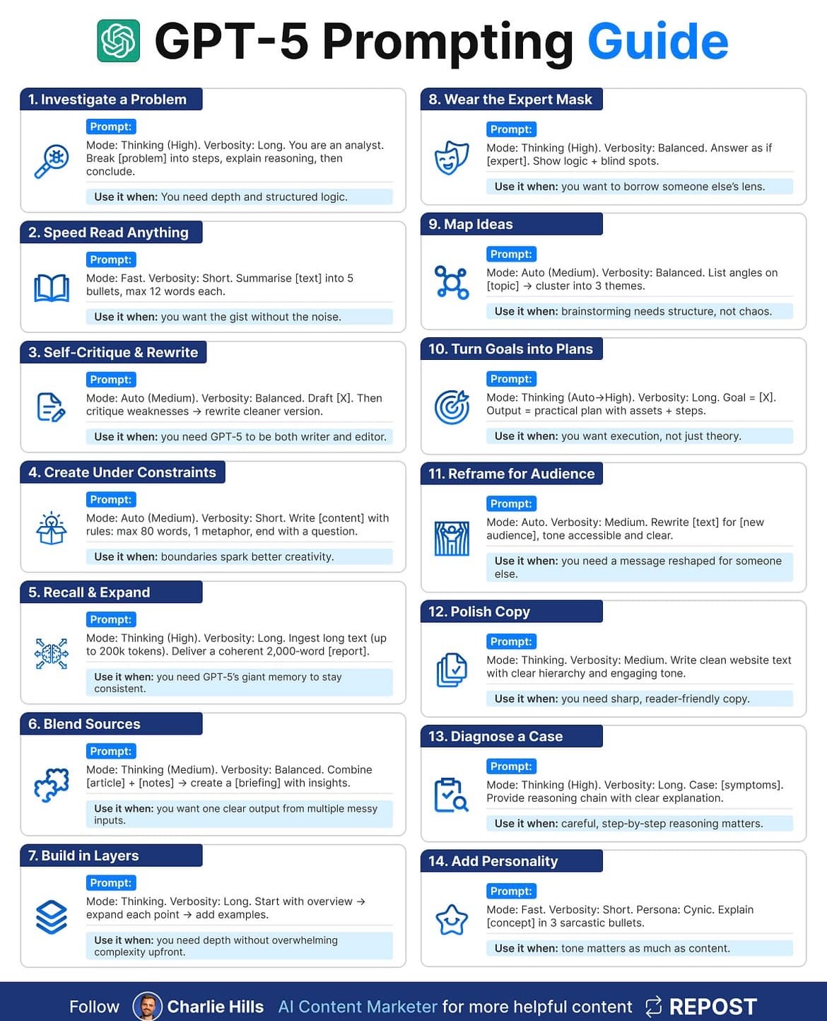 Điểm mạnh chung: Hệ thống hóa cách sử dụng GPT-5 tùy mục tiêu (nghiên cứu, tóm tắt, sáng tạo, đào tạo, viết content…).