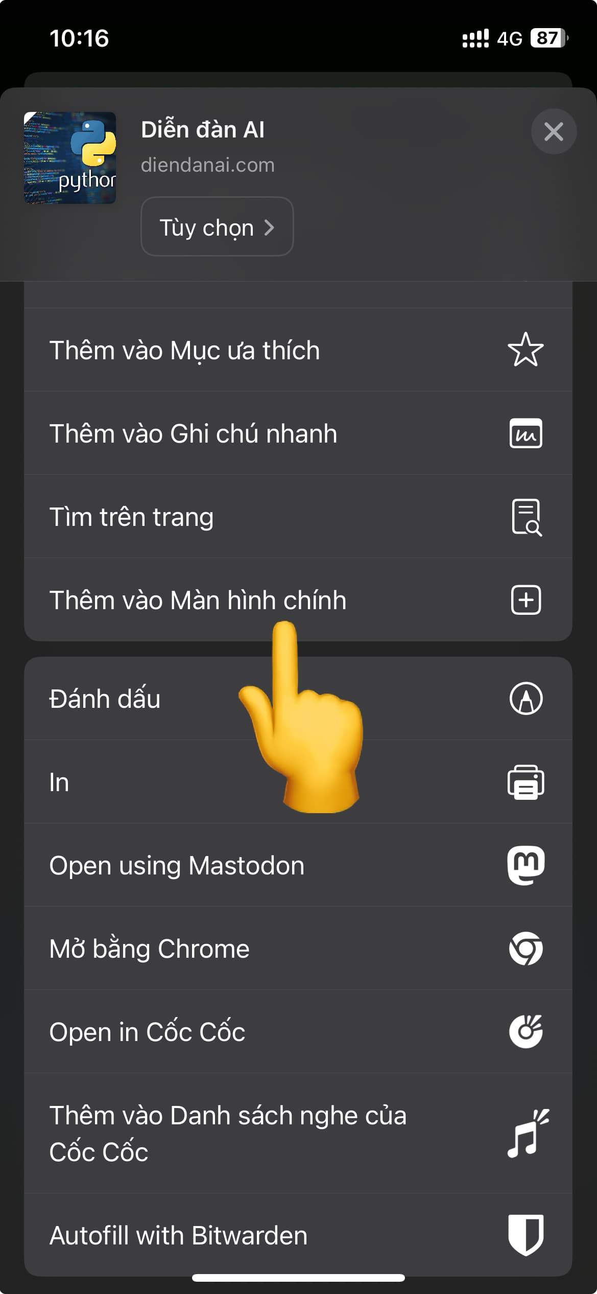 Ấn chọn phần “Thêm vào màn hình chính”.