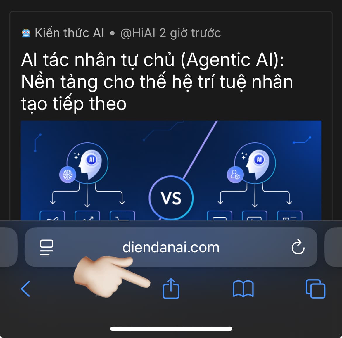 Ấn vào nút chia sẻ ở phía dưới trình duyệt, chính giữa.